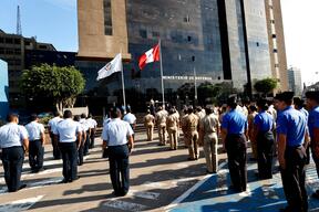 El izamiento del Pabellón Nacional estuvo a cargo del director General de Educación y Doctrina (DIGEDOC), Jorge Villanueva Bardales, mientras que la bandera institucional fue izada por el Coordinador Ejecutivo de la Unidad Funcional de Integridad Institucional (UNFIN), Jorge Portocarrero Salcedo, en un acto que simboliza la unidad y vocación de servicio del sector.