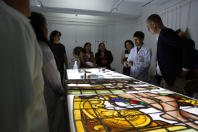 Finalmente, se llevó a cabo una visita guiada a cargo del equipo de vitralistas, quienes actualmente vienen trabajando en la recuperación de los vitrales de nuestro Centro Cultural. Durante el recorrido, los representantes del CCE pudieron conocer de primera mano los procesos técnicos y especializados que se aplican en la intervención de estos importantes elementos patrimoniales.